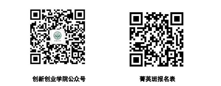 创新创业“菁英班”报名时间为2023年11月27日-2023年12月15日,学生们可在创新创业学院公众号创业教育板块中获得二维码(左)或扫描下方二维码进行报名(右)。