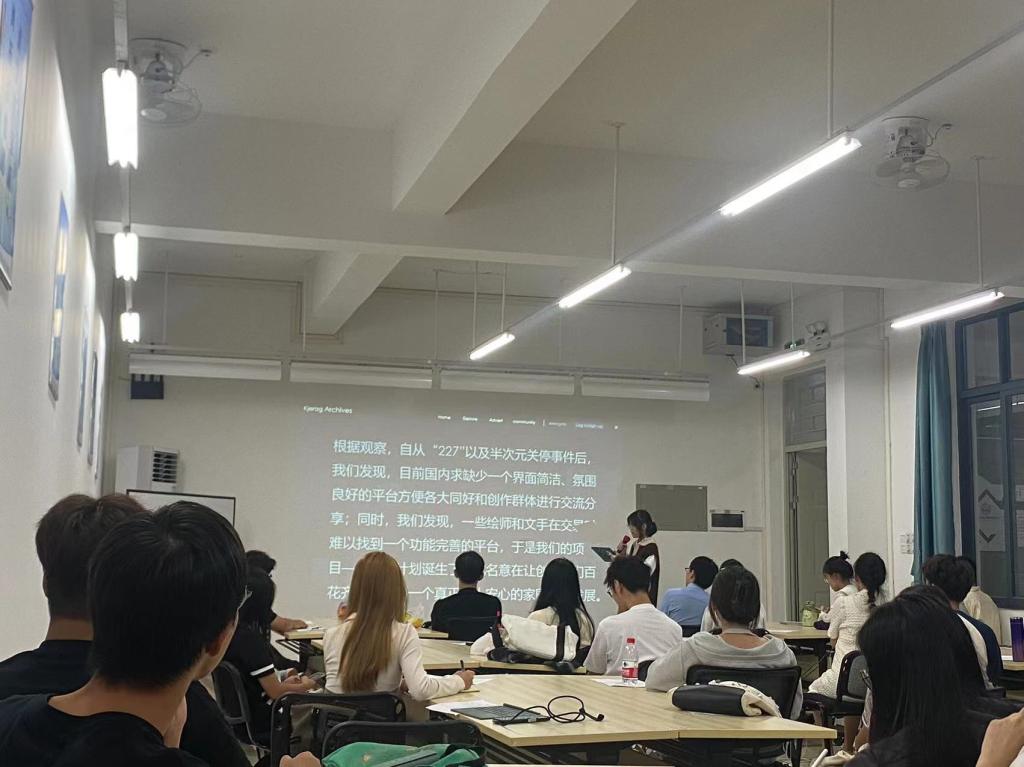 随后,开始创意演说环节。共有4位同学以创始人的角色带来了创意演说,演说者提前准备了演说PPT,向在场同学展示了自己的创意点子。此外,杨宇帆副院长也向同学们分享了几个有趣的创意。