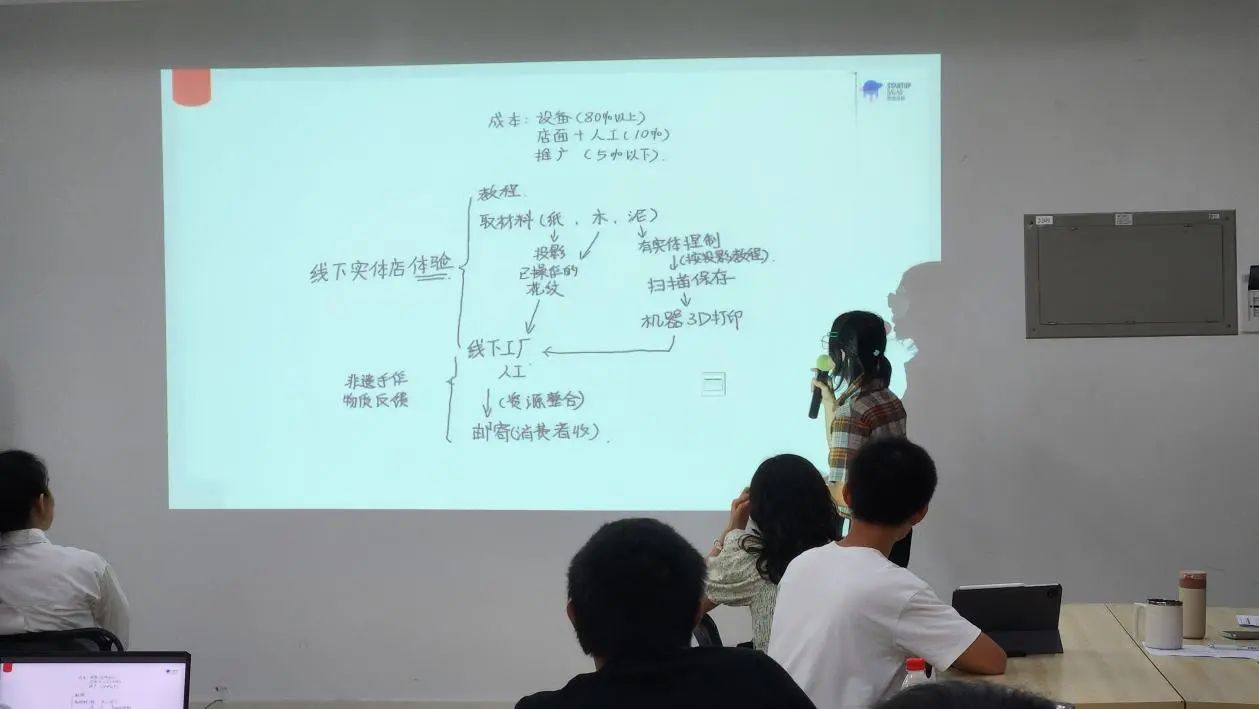 在现场的指导老师参与了各小组讨论,对各小组的创意想法进行可行性和创新性的评估,并针对性给予调整意见,帮助小组确定项目方向。在老师的帮助下,同学们对如何寻找创意来源、如何评估创意的可行性、如何将创意推演到可商业化的创业项目、团队组建的合理性等方面形成了逻辑上的认识和初步实操。