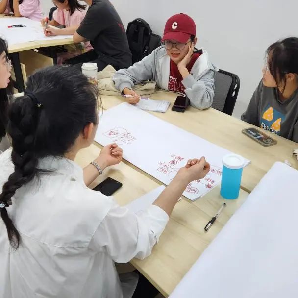 现场同学成功组队后,便以小组形式进入了各自的讨论环节。大家热情洋溢,展开了激烈的讨论。