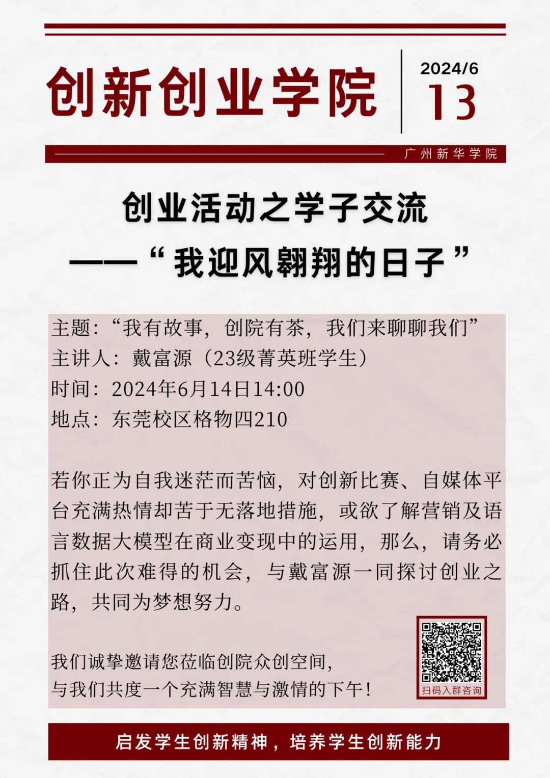 一页通知13|创业活动之学子交流——“我迎风翱翔的日子”