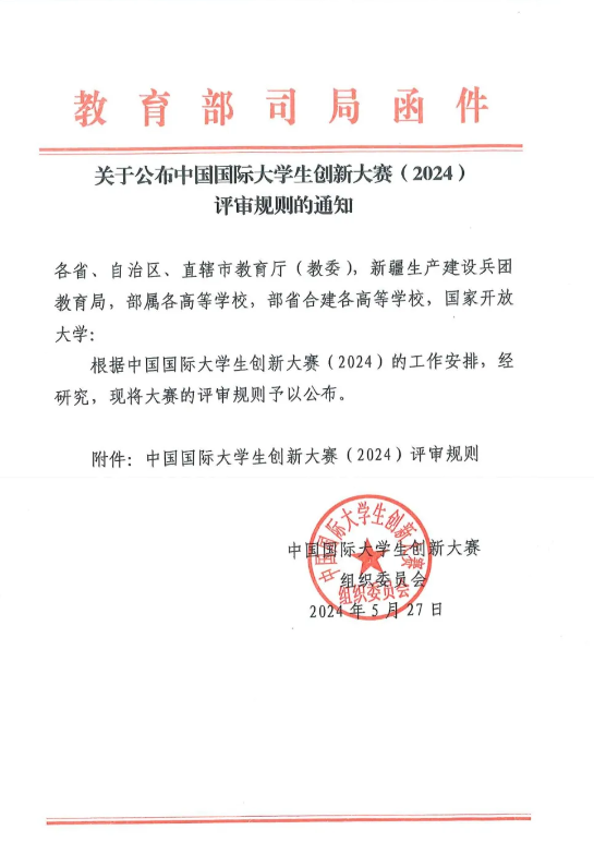 关于公布中国国际大学生创新大赛(2024)评审规则的通知(附件下载)