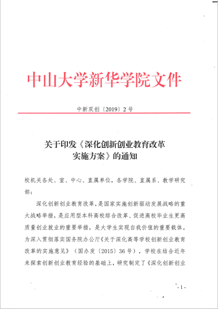 中新双创〔2019〕2号-关于印发《深化创新创业教育改革的实施方案》的通知