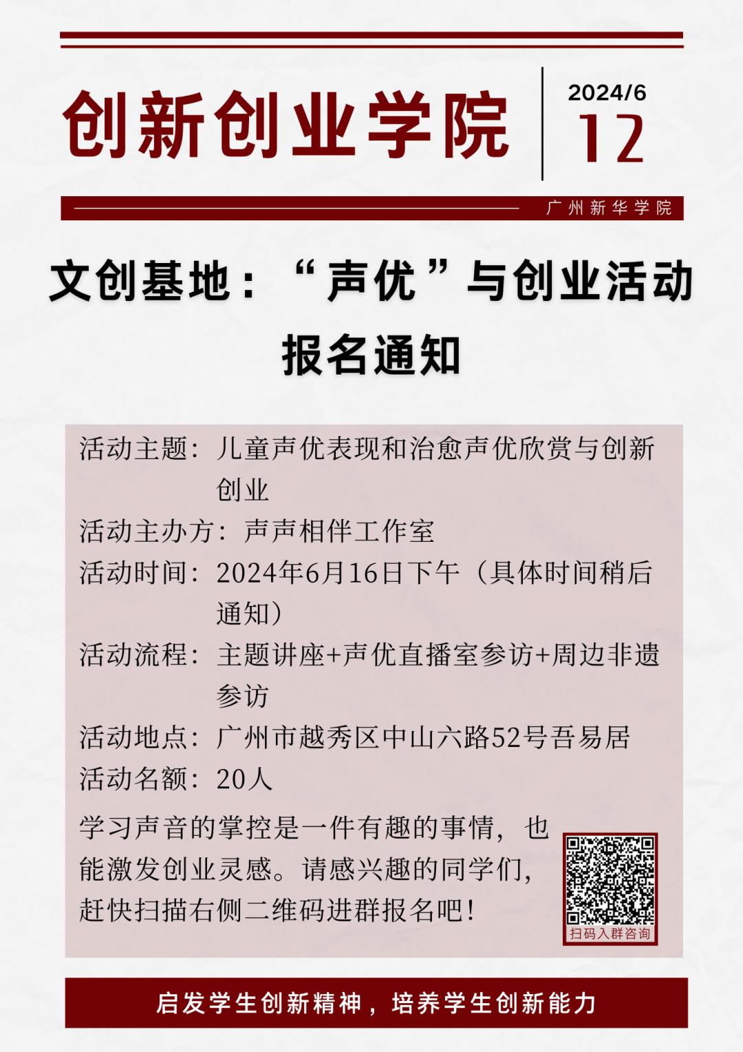 一页通知12|文创基地:“声优”与创业活动报名通知