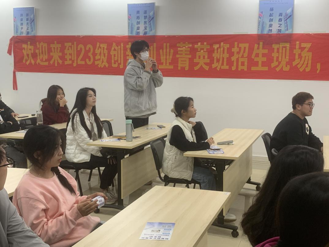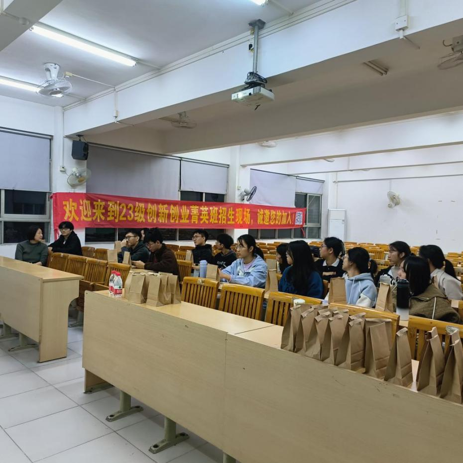本次活动对象主要是对创新创业感兴趣的大一、大二学子。创新创业学院的老师和同学们精心策划此次宣讲会,参与活动的有杨宇帆副院长、王涛老师、陈靖老师、胡丽娟老师。菁英班22级师姐林君、龙菲菲主持了本次活动,学院学生助理等协助了活动相关工作开展。此次活动为同学们提供了全面深入了解创新创业学院菁英班的平台。