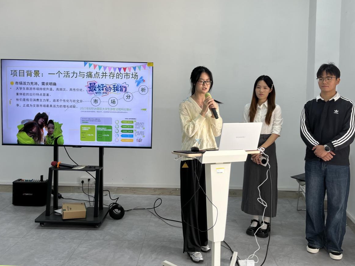路演过程中,各团队聚焦真实社会需求与细分市场痛点,展现出强烈的创新意识与实践能力。其中,“风·光·守”项目,已申请4项专利并完成超60处水域实地调研;“新星孵化”项目致力打造产教融合型电商服务项目,整合高校学生资源与品牌方需求,提供从平台入驻、运营托管到内容推广、私域直播的全链路服务,同步孵化学生达人与运营人才,实现品牌降本增效、学生技能变现、高校产教融合的多方共赢。“AI珍珠直播平台 ”、“SUPSMELL”、“AI聚能·粤红新程”等项目体现了学生跨专业协作,学以致用的探索精神。